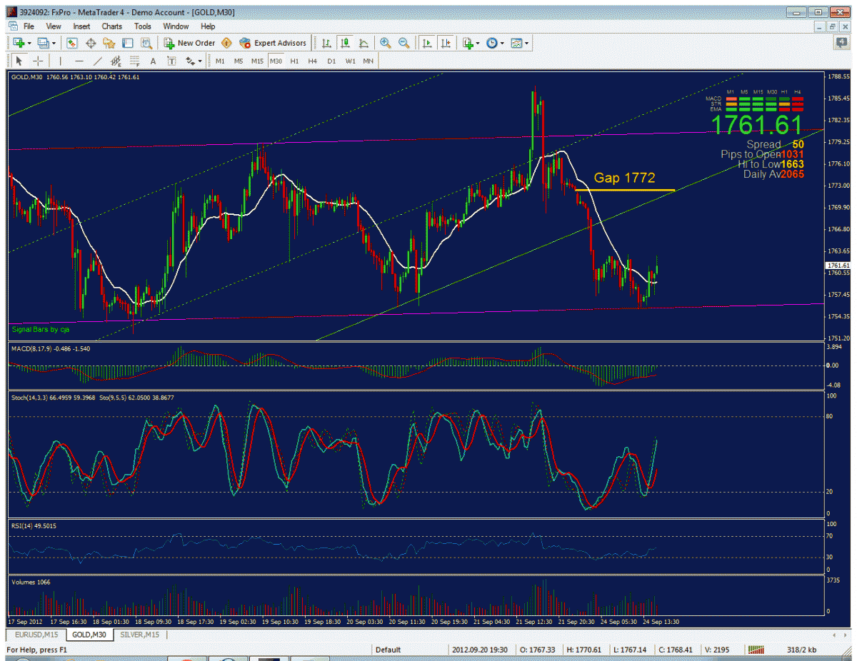 gejen 5,749 Report post Posted September 24, 2012 ขอบคุณคลิปวิเคราะห์ราคาน้องทองภาคค่ำจากบริษัทต่างๆด้วยค่ะคุณกระต่ายที่น่ารัก และขอบคุณวิเคราะห์ของคุณหมูต้มด้วยค่า วิเคราะห์กราฟและแนวโน้มทองก่อน 2 ทุ่มนี้เองของR จานอั๋นค่ะ ขอบคุณ Rจานอั๋นมากๆๆนะค้า สวัสดีครับทุกคน สวัสดีตอนเย็น วันที่ 24/9/2555 เวลา 17.17 น. วันศุกร์ปลายเดือนกันยายน แล้วนะครับ บรรยากาศทองคำหลังมี QE3 ปีนี้ ไม่คึกคักเท่าไหร่ ครับ คงต้องเน้นเป้าหมาย ระยะยาวเป็นหลัก ครับ หรือไม่ก็ อาจจจะรอ............ ขาใหญ่ มาดันราคาทองคำกันอีกต่อไป วันศุกร์ ราคาทองคำเปิดตลาดมาที่ 1767.80 เหรียญ มีราคาสูงสุดที่ 1787.37 เหรียญ มีราคาต่ำสุดที่ 1766.57 เหรียญ ปิดตลาดที่ 1772.55 เหรียญ รวมทั้งวันราคาทองคำวิ่งรวมทั้งหมด 21 สัญญา มี Volume การซือ้-ขาย 61792 สัญญา เพิ่มขึ้น 2960 สัญญา การเคลื่อไหวก็เป็นไปในลักษณะ Side ways Up ขึ้นทดสอบแนวต้านหลัก 1780-1785 แต่ไม่สามารถ ยืนเหนือ ได้ ก็เกิดแรงขายออกมาเป็นไปในลักษณะการเก็งกำไร ระยะสั้น ตรงนี้ ผมไม่แน่ใจนะครับว่า ตอนนี้ขาใหญ่ กำลังกดสัญญาณ Indicator ต่าง ๆ ลงหรือปล่าว เพราะถ้าดูจาก Indicator ต่าง ๆ แล้ว เริ่มส่งสัญญาณ Down Trend ในกราฟ ต่าง ๆ อีกครั้งแล้วนะครับ หลังจากสัญญาณ ต่าง ๆ บ่งบอกถึงสัญญาณ Over Bought มาได้สักระยะแล้ว แต่ก็ดีครับ ถ้าสัญญาณ ต่าง ๆ กลับมาใช้ได้อีกครั้ง ก็จะสามารถสร้างความเชื่อมั่น และผลักดันให้นักลงทุน เข้ามาซื้อ-ขาย ตามสัญญาณ Indicator ต่าง ๆ นั้นเองครับ แนวรับแนวต้าน แนวต้าน 1763-1766 ดูว่าจะผ่านไปได้หรือไม่ ถ้าได้ก็ 1770-1777 อีกครั้ง *** 1785-1790 ระวังแรงขายมากมาก อีกครั้ง ****เป้าหมาย 1800 ขึ้นไป สรุป แนวต้านขอเน้นระยะสัปดาห์........ โดยต้องติดตามดูว่า ราคาทองคำจะสามารถขึ้นทดสอบแล้วไปยืนเหนือ 1780-1790 ได้หรือไม่ และจะสามารถ ผ่านแนวต้านหลักตรงนี้ไปได้อีกครั้งหรือไม่ ถ้าผ่านได้ โดยมีแรงขายออกมามาก เป้าหมายมองเหนือ 800 ขึ้นไป เช่นเดิมครับ แนวรับ 1757-1750 ***** ดูว่าจะหลุดหรือไม่ ถ้าหลุด 1745-1740 ไม่ควรหลุด ถ้าหลุด 1730-1700 อีกครั้งครับ สรุป แนวรับคงต้องเป็นการเน้น แนวรับแถวโซน 1750 เป็นหลัก ว่า จะรับอยู่หรือไม่ ถ้ารับอยู่จะดีดขึ้นขึ้นเองเหมือนเช่นที่ผ่านมา แต่ถ้าไม่ ****** ราคาทองคำก็อาจจะย่อตัวลงไปก่อนตามสัญญาณ indicator ต่าง ๆ เพื่อแล้วหลังจากนั้น ราคาทองคำ จะกลับขึ้นมาพร้อมสัญญาณ indicator จนกว่า จะหมดแนวโน้ม หรือ indicator เกิด error อักครั้งนั้นเองครับ กรอบเล็ก 1750-1780 = 30 เหรียญ กรอบใหญ่ 1740-1790 = 50 เหรียญ คืนนี้ไม่มีตัวเลขเศรษฐกิจอเมริกา โชคชะตาฟ้าลิขิต ลิขิตฟ้าหรือจะสู้มานะคน การให้ที่ยิ่งใหญ่ คือการให้ต่อไปไม่รู้จบ มารายงาน สายอีกแว้ว .......... 1 Quote Share this post Link to post Share on other sites