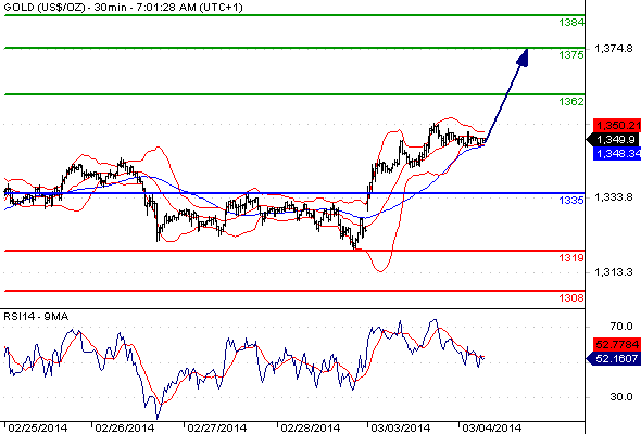 gejen 5,749 Report post Posted March 4, 2014 (edited) Gold Direction By GT Gold Bullion: 4 March 2557 รออ่อนตัวตามกรอบแนวรับสะสมซื้อ ระหว่างวันราคาอ่อนตัวลงทา Low บริเวณ US1,337 ทิศทางยังคงเป็นเชิงบวก แนวโน้มมองเป็นการย่อตัวพักฐาน หลังมีสัญญาณ Bearish Divergence กับ RSI โดยรอดูแนวรับที่บริเวณ US$1,333 (Retracement 61.8%) แนวรับถัดไป US$1,325 (EMA 200วัน) แต่หากราคาอ่อนตัวหลุด US$ 1,325 มีโอกาสเปลี่ยนทิศทาง ส่วนแนวต้าน US$1,355 และ US$1,360 (บริเวณ High ก่อนหน้า) กลยุทธ์ หลังแบ่งทาขายทากาไรในช่วงเช้า คืนนี้รออ่อนตัวตามกรอบรับ US1,333 แนวรับถัดไป US,1325 เข้าสะสมซื้อ Edited March 4, 2014 by gejen 2 Quote Share this post Link to post Share on other sites