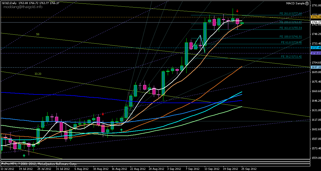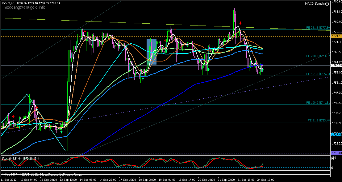 moddang 3,625 Report post Posted September 25, 2012 (edited) สุดท้ายยังประคองตัวไม่ร่วง แต่สัญญาณ ยาวจากกราฟรายวันไม่ค่อยสวย คงต้องระวังกันบ้าง เช้านี้ก็คงมีความ พยายามขึ้นต่อ จะไปได้ซักแค่ไหนน๊อ ได้แต่แอบลุ้นทุกวัน ถ้าดูจากกราฟนี้ก็ยังไม่หลุดเทรน หรือ fibo fan ที่ลากแล้วมองว่ามันใช่ตลอด ทำซ้ำไม่ได้เหมือน และถ้าดูฐานราคาช่วงนี้ ไม่มี Lower low แต่มี Higher high ก็คงต้องเดาว่ามีสิทธิ์ ที่จะทดสอบแนวต้าน แนวรับ แนวต้านเหมือนทุกวัน ชอบจังไม่ต้องหาเพิ่ม ถ้าดูกราฟรายวัน มี ma ยาวๆ 50 75 100 200 ที่มองดูแล้วน่าเชื่อว่าราคาไม่ลง แม้ stochatic& macd อ่านว่าน่าลง แต่ rsi ยังไม่ลง ถ้าวันนี้ราคามาแตะ1772 ได้ก็น่าลุ้นแล้วคาดว่าน่าได้เห็น1771 Edited September 25, 2012 by moddang.. 3 Quote Share this post Link to post Share on other sites
