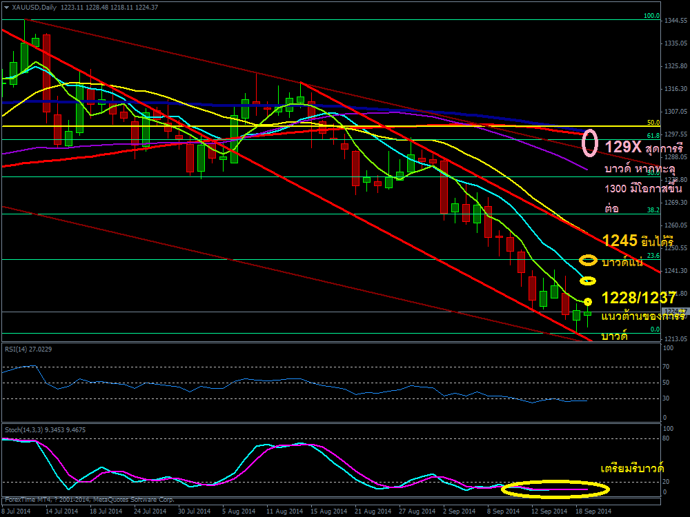 วันนี้หรือสัปดาห์หน้าทองมีโอกาสรีบาวด์สูงครับ หากยืน 1228 ได้จะไปเทส 1237 หากยืนราคา 1245 ได้เป็นการบืนยันรีบาวด์ไปเทส 129X ครับ หากถึงแนวสุดท้ายแล้วไม่ทะลุ 1300 มีโอกาสลงต่อแปลว่าขาลงยังไม่จบครับ แต่ถ้าทะลุ 1300 แล้วยืนได้ในสัปดาห์หน้า มีโอกาสจบขาลงนะครับ ทั้งนี้ต้องพิจารณาตามเงื่อนไขแนวรับ แนวต้านที่บอกไปครับ ส่วนตัวหาจังหวะซื้อตอนย่อมากๆ เล่นขารีบาวด์ในวันนี้หรือสัปดาห์หน้า โดยต้องเล่นเร็ว เพราะเทรนด์ใหญ่ยังขาลงอยู่นะครับ ทั้งหมดผมเดาครับ :047