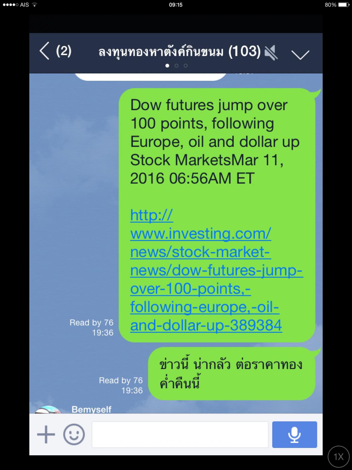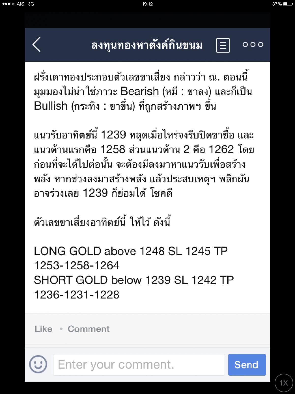 penguin 1,565 Report post Posted March 12, 2016 เมื่อคืน หลังจากอ่านข่าวนี้ ก็ไม่กล้าที่จะมองว่า ราคาทองจะได้ไปต่อ ขายทองคืนร้าน ยามเมื่อคนถือเงินจำนวนมาก แล้วหวังผลตอบแทนสูงๆๆ เขาจะมุ่งหน้าหาตลาดหุ้น ถึงแม้ว่าจะเล่นไปเป็น ยังไงก็อยากเข้าไปเล่น แต่ยามใดแล้ว ที่รู้ว่าสิ่งที่ทำลงไปเสี่ยงเกินไป ก็จะค่อยมุ่งหาทองคำ ตอนนี้ ระยะเริ่มแรก หลังจาก ECB ประกาศ QE เขาก็จะเล่นหุ้น เพราะฉะนั้น ราคาทองจะร่วง ว่าแต่จะร่วงแล้วไปหยุดที่จุดไหนล่ะ 2 Quote Share this post Link to post Share on other sites