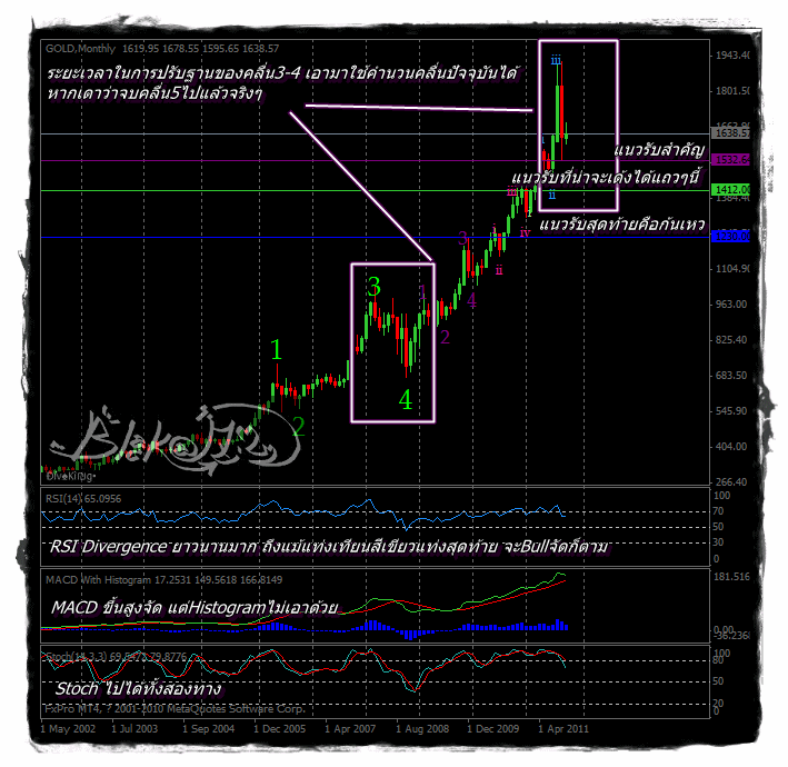 โจได 517 Report post Posted October 6, 2011 แนวรับระยะกลาง1-5เดือนครับ แนวรับสำคัญที่สุดของเดือนนี้คือเส้นสีม่วง=1532.64 หากหลุดล่ะก็ จะทำให้แนวโน้มลงเต็มตัว ลงยาวไปที่1412เป็นอย่างน้อย กินเวลาไม่น้อยกว่า4เดือนจนกว่าจะจบคลื่นปรับฐาน วัดก้นเหวต่ำสุดที่1250-1230 = จบคลื่น5 สำคัญที่สุดคือแท่งเทียน1-2เดือนนี้*แก้ข้อความ* ว่าจะหลุดLowเดิม1532.64 มั๊ย แนวต้านสำคัญที่สุดภายในเดือนนี้คือ1680 เป็นด่านแรกที่ต้องขึ้นไปยืนให้ได้ภายในเดือนนี้ และจะทำให้สัญญานบวกมากขึ้น ถึงแม้จะยังมีความเสี่ยง ที่จะเป็นแค่คลื่นรีบาวด์ก็ตาม เป้าหมาย(Bullจัดๆหน่อย)2150-2170 เร็วสุดไม่น่าเกินสิ้นปีนี้ และอาจไปได้ไกลกว่านั้นไปจนถึงปลายปีหน้า ขยายทั้งเวลาและเป้าหมายออกไป แต่..มันก็อาจจะไม่ง่ายขนาดนั้น ราคาอาจจะไซด์เวย์ประคองตัวอยู่ในกรอบ1600-1660อีกสักระยะ จนกว่าจะเลือกทางใดทางนึงภายในเดือนนี้ และสุดท้ายขึ้นอยู่ที่ว่าจะหลุด1532.64รึปล่าวครับ 5 Quote Share this post Link to post Share on other sites